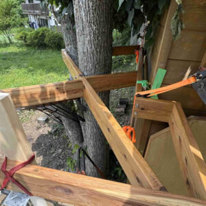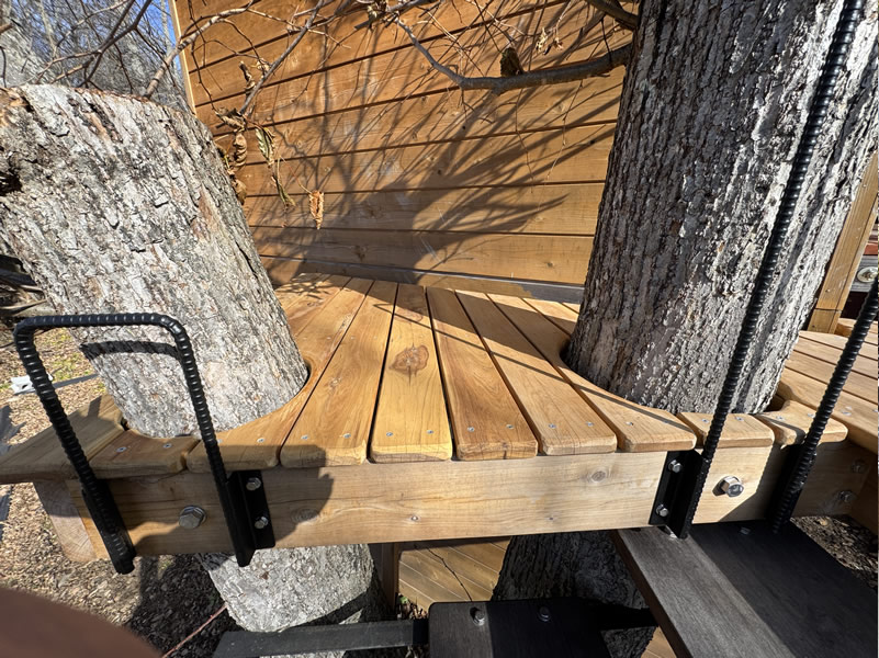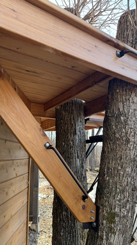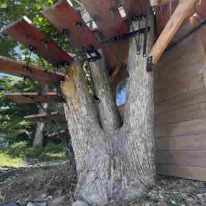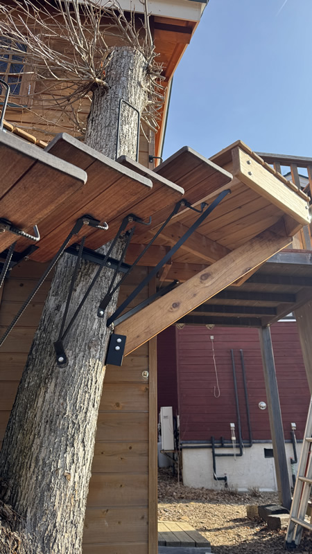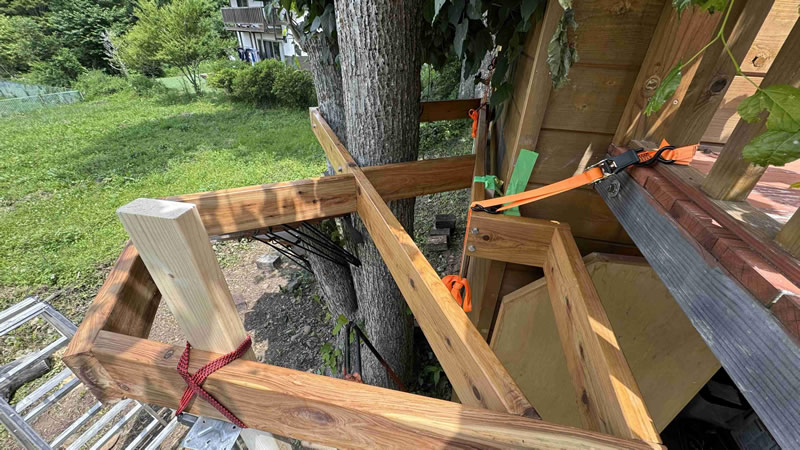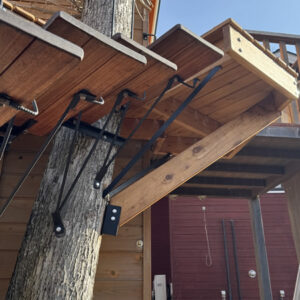 ツリーハウスの様に木だけに固定して、地面からの支えをしない作りです。